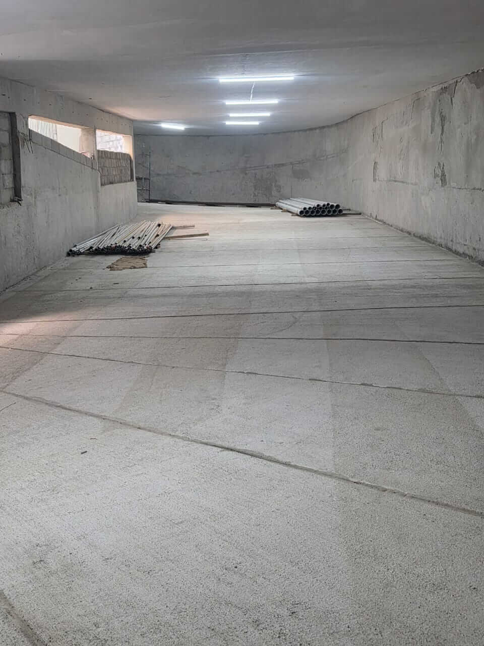 - Internal walls with concrete blocks.